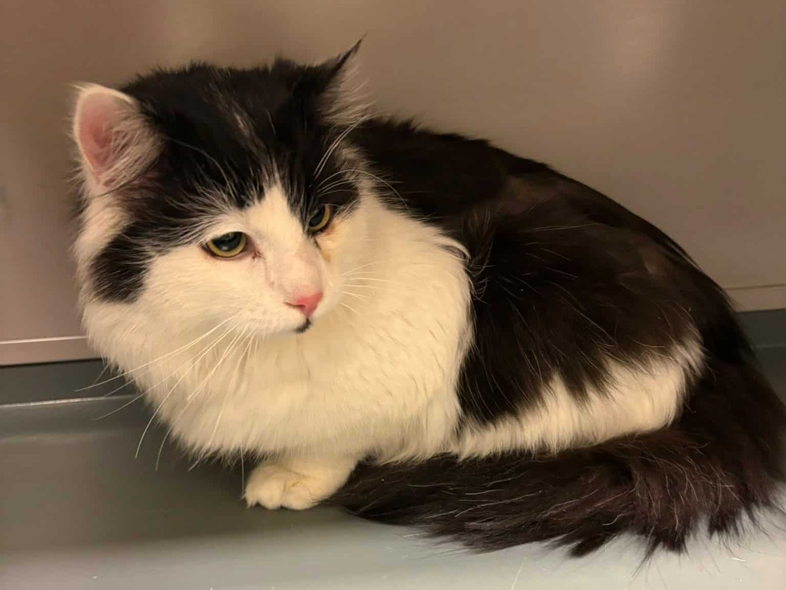 Denne hannkatten kom inn til oss fra Jakobsli i Trondheim, hvor han hadde blitt observert gående ute over tid. Han er dessverre verken kastrert eller ID-merket.